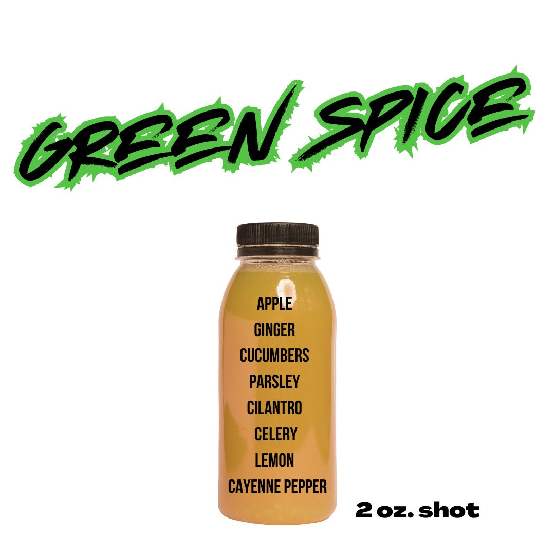Ingredients: Apple, Ginger, Cucumbers, Parsley, Cilantro, Celery, Lemon, Cayenne Pepper